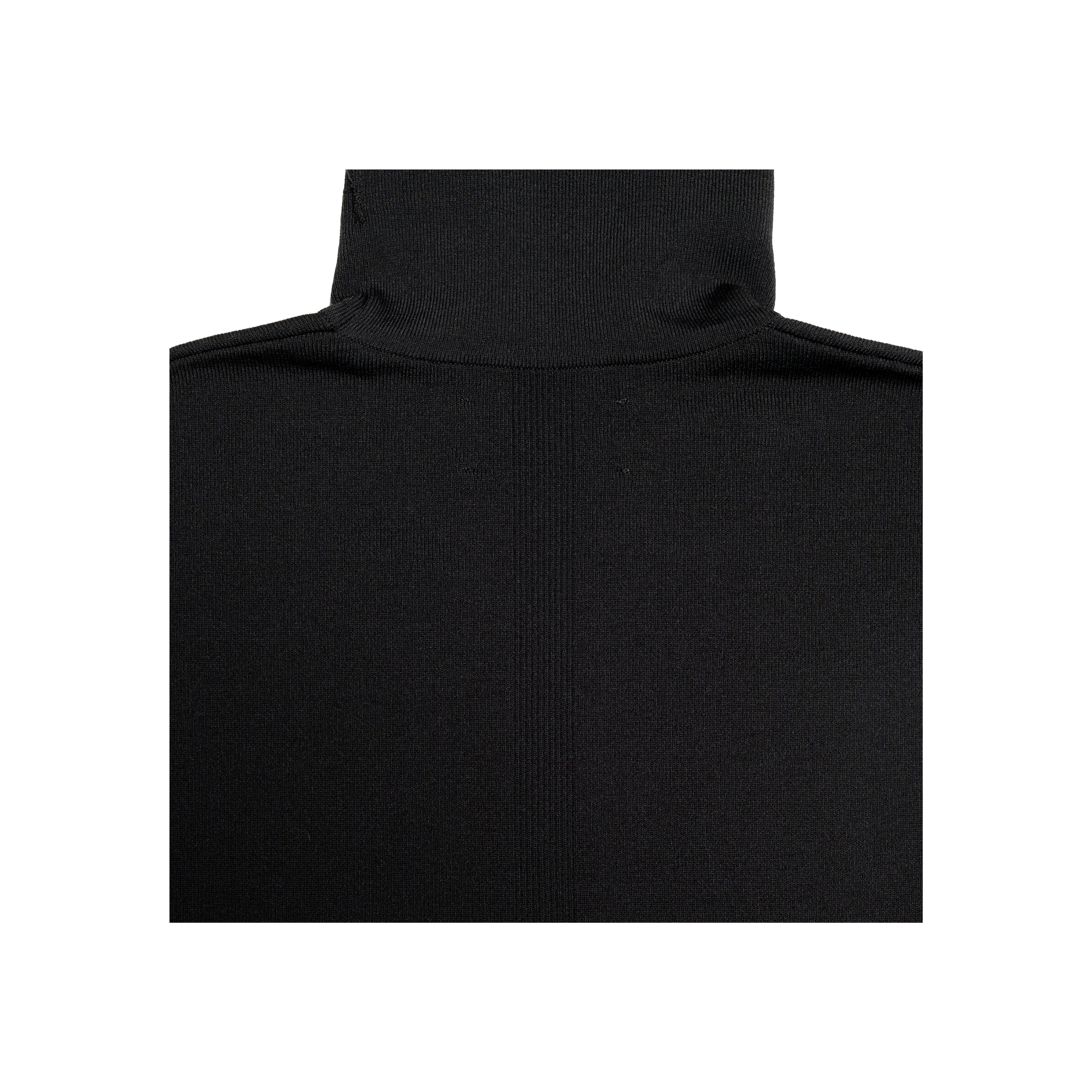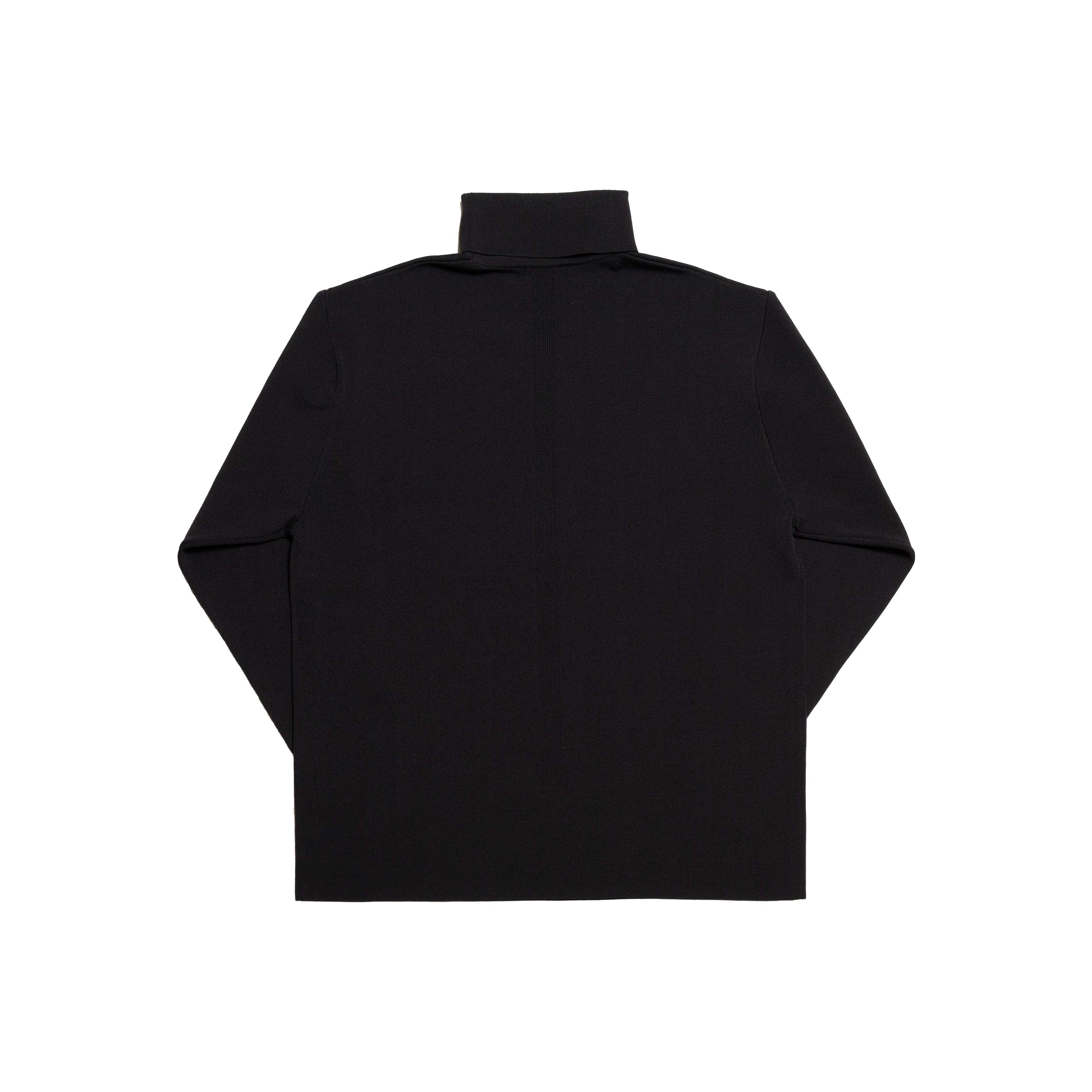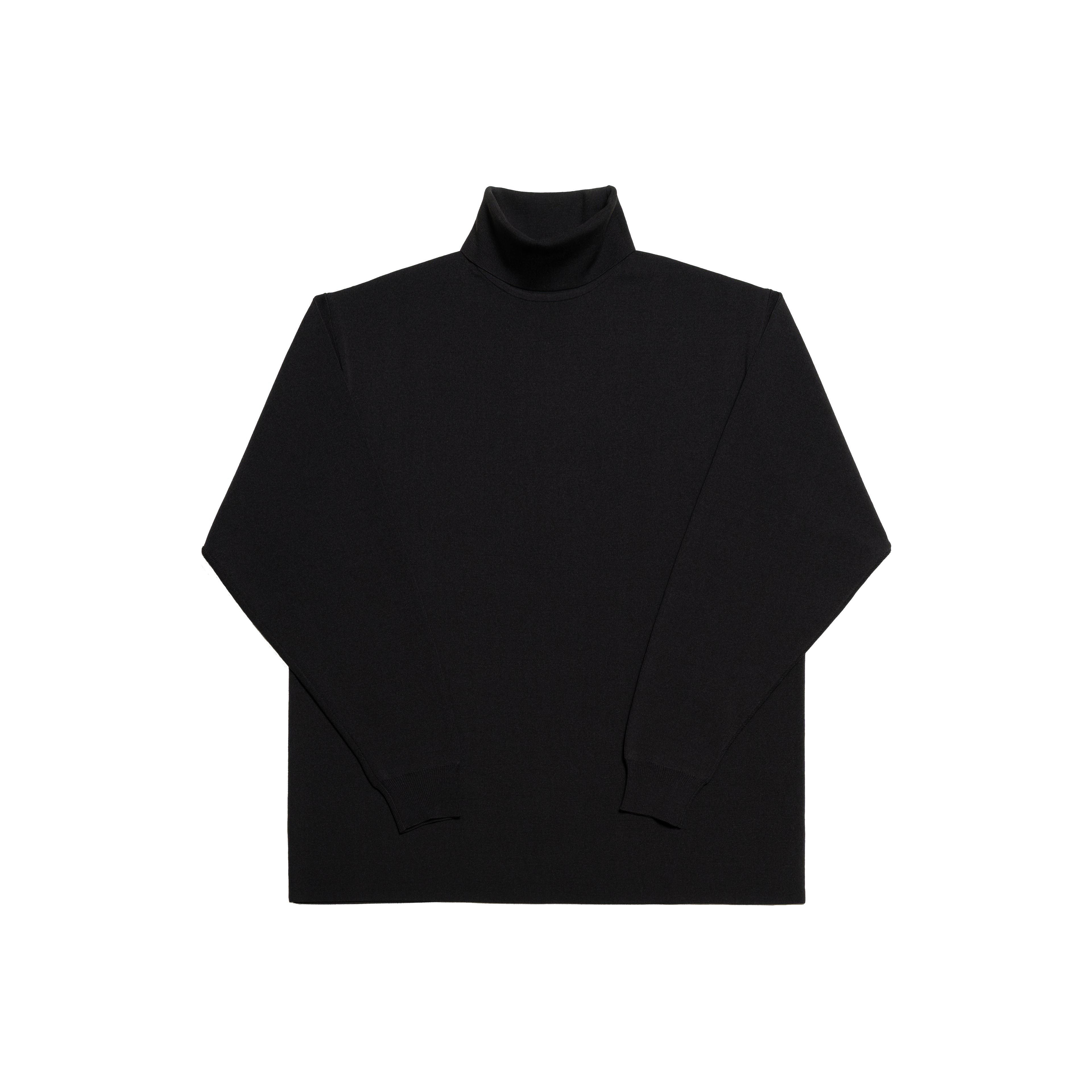 限りなく黒に近いダークチャコールグレーカラーで、様々なアイテムにコーディネート可能なタートルネックニット。