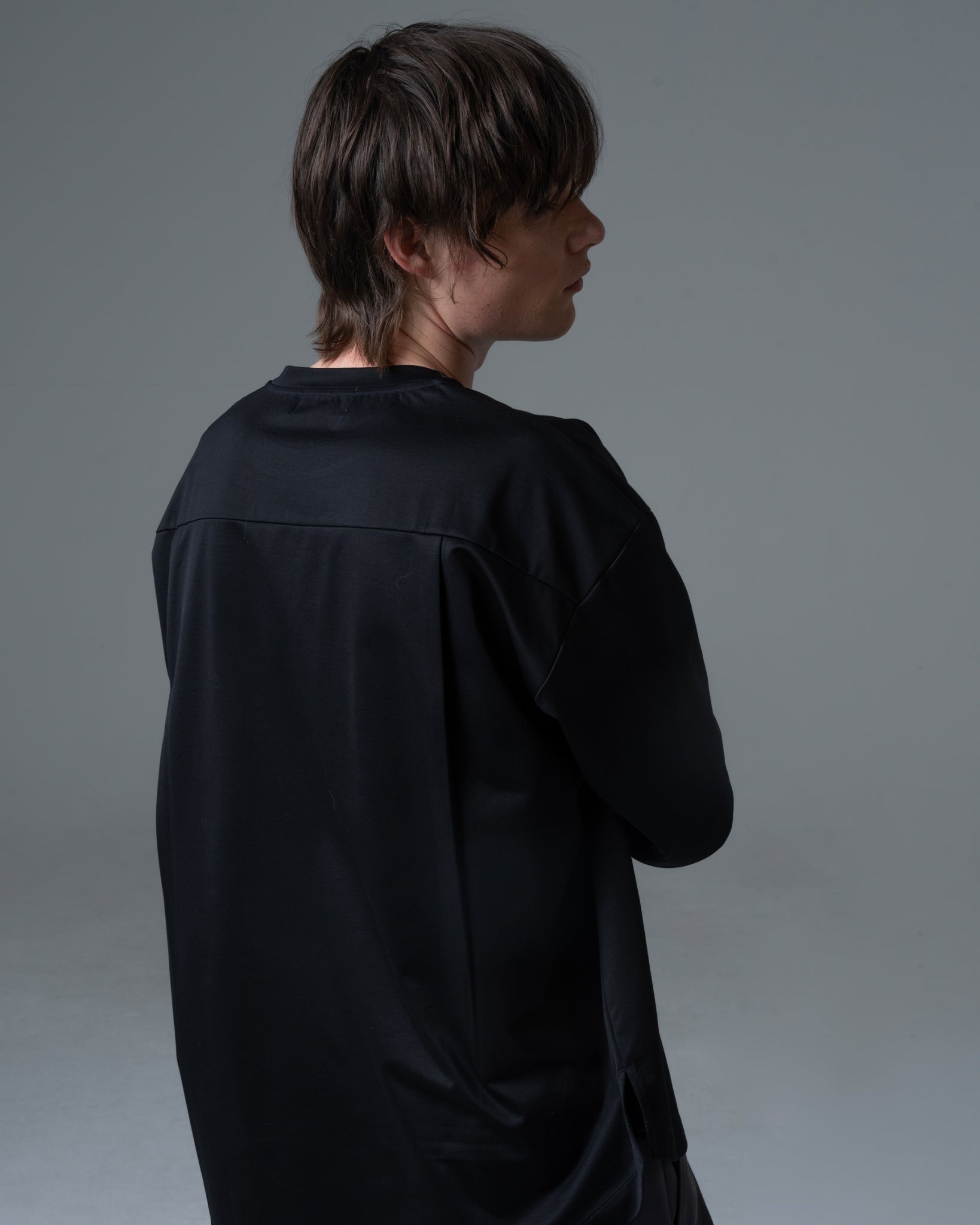 ゆったりとしたオーバーサイジングを採用し、ディティールは前後丈さを付けたラウンドヘムにサイドスリット。